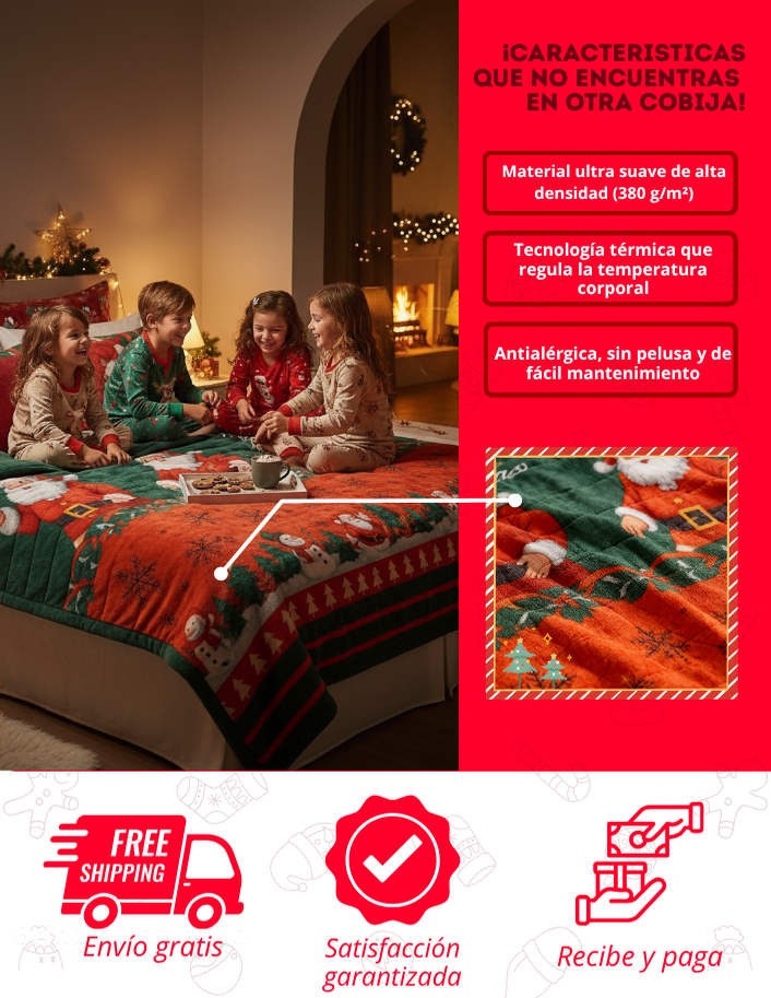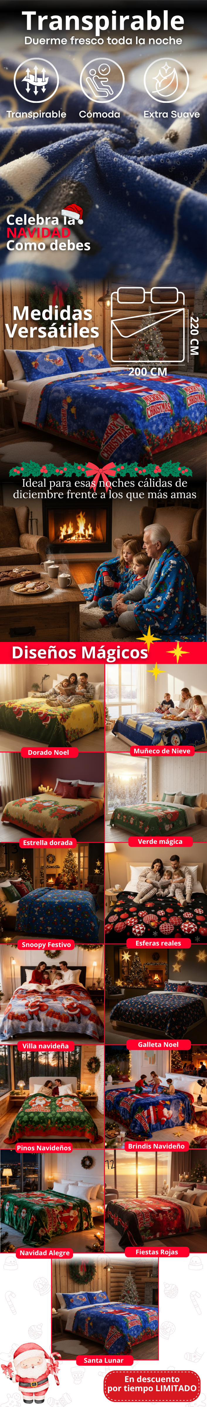 Las dimensiones de nuestras cobijas navideñas son de 200X220 CM medidas perfectas para camas king y queen y para camas dobles tenemos medidas de 140cm x 190 cm.