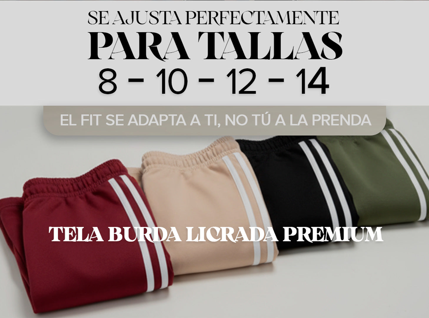 Está disponible en tallas 6, 8, 10 y 12, su tela es elástica adaptable y cómoda