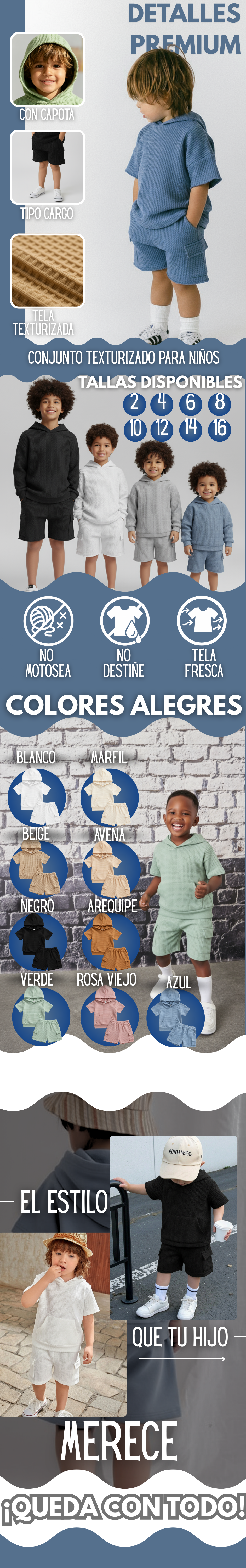 Está elaborado en tela tipo galleta, suave, fresca y resistente. Ideal para climas cálidos y para el uso diario sin que se motosee ni destiña con los lavados.